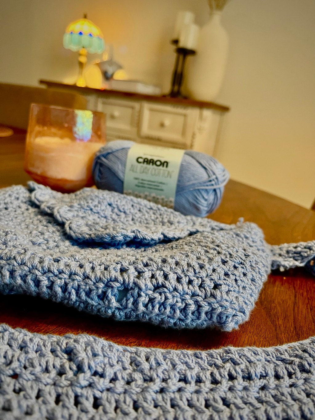 This is my first ever crochet project that I completed. I love the color of yarn I chose. I love the way it looks sitting on our entryway table…but I honestly haven’t used it since I completed it.